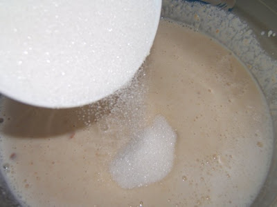 Luego agregar la esencia de vainilla, el azúcar, los huevos y mezclar bien.