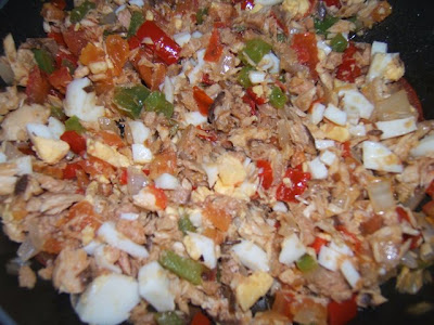 Agregamos la caballa bien desmenuzada y mezclamos bien los ingredientes.